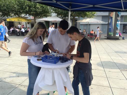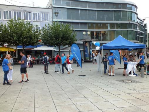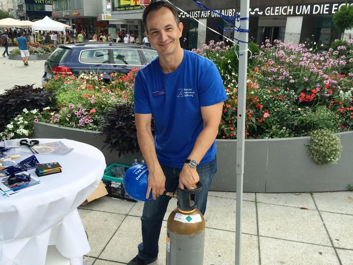 Gemeinsam mit unseren ehrenamtlichen Helfern erinnerten wir an den Internationalen Tag der Demokratie und stießen dabei auf viel positive Resonanz und Gesprächsbereitschaft unter den zahlreichen Passanten im Herzen Saarbrückens. Natürlich erleichterte das gute Wetter unsere Arbeit enorm. Im regen Meinungsaustausch mit interessierten Bürgerinnen und Bürgern waren wir selbstverständlich auch offen für kritische Beiträge. Wer wollte, konnte uns unter der Fragestellung: Demokratie braucht... seine Meinung aufschreiben.