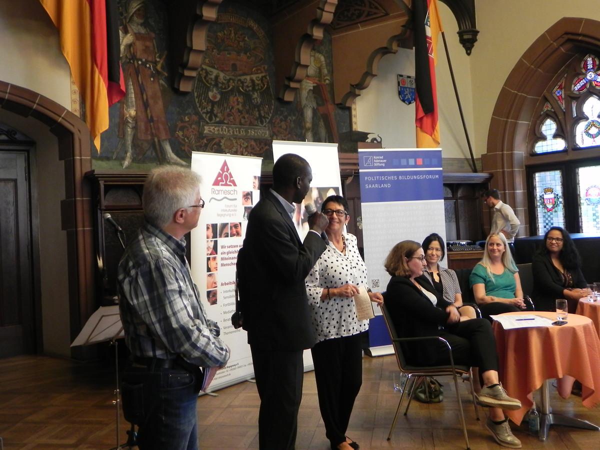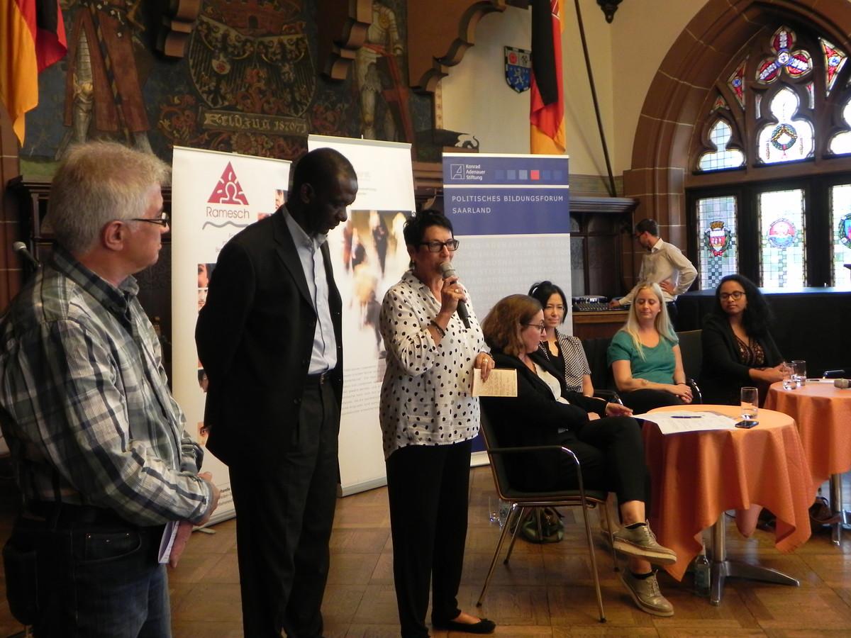 Nach Eröffnung der Veranstaltung und Begrüßung der Teilnehmerinnen und Teilnehmer durch die Tagungsleiterin Helga Bossung-Wagner, Leiterin des Politischen Bildungsforums Saarlands, gab diese das Wort an Mohamed Maiga, Präsident von Ramesch e.V., und Ivan Iliev, Vorsitzender des Integrationsbeirates der Landeshauptstadt Saarbrücken weiter, welche ebenfalls die Gäste begrüßten.
