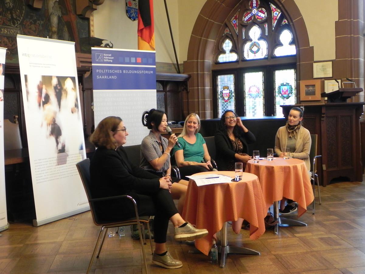 Im Anschluss an die Ausführungen der Podiumsteilnehmer hatten die Veranstaltungsteilnehmer die Gelegenheit, Fragen an die Gäste zu stellen. Die Fragen drehten sich insbesondere um Integration von Migranten.