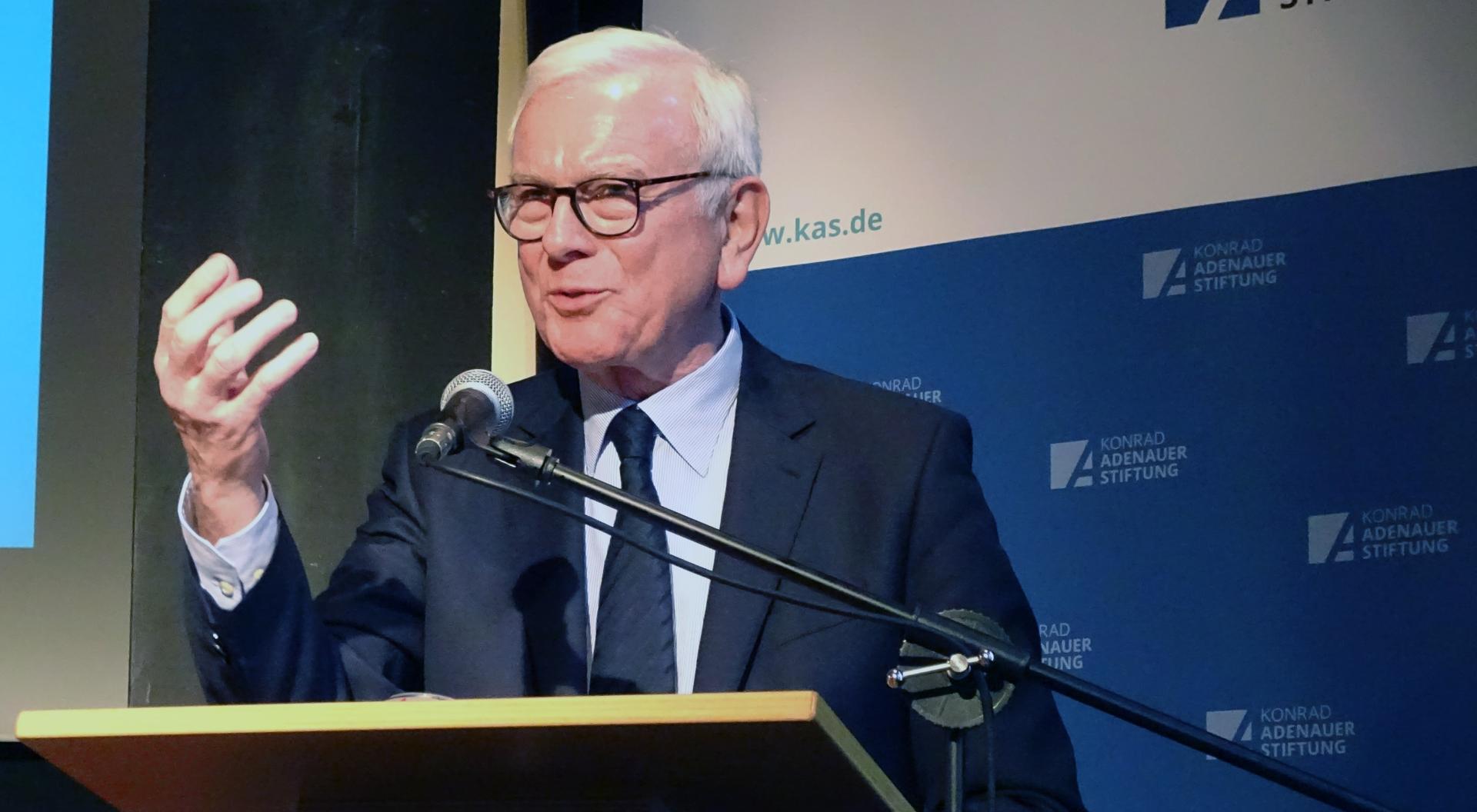 Prof. Dr. Hans-Gert Pöttering, ehemaliger Präsident des Europäischen Parlaments und Beauftragter für Europäische Angelegenheiten der Konrad-Adenauer-Stiftung, appellierte, die Zukunft der Europäischen Union hänge von uns ab. Er erinnerte an vormalige Krisen, zum Beispiel die Verfassungskrise 2005. Diese können aufrütteln, den richtigen Weg zu gehen. Die Osterweiterung der EU war ein Traum, der Wirklichkeit geworden ist, weil sich "unsere Werte durchgesetzt haben". Er warnte davor, die Würde des einzelnen Menschen nicht ausreichend zu achten wie auch die Rechte von Minderheiten. Niemals sollten wir Deutsche vergessen, was wir anderen, vor allem den Ungarn, Polen, Slowaken etc. zu verdanken haben. Er betonte: "Die Europäische Union ist eine Wertegemeinschaft. Sie gründet sich auf die Würde des Menschen, Freiheit, Demokratie, Recht und Frieden. Das ist der Kern."