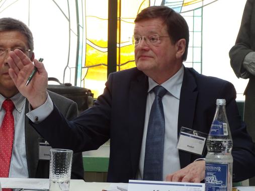 Der Politikwissenschaftler und Extremismusforscher Prof. Dr. Eckhard Jesse (Technische Universität Chemnitz) hob mit dem Beispiel des „Hufeisen-Modells“ Gemeinsamkeiten und Unterschiede von Links- und Rechtsextremismus heraus und ging der Frage nach: Was bedroht die Demokratie mehr? Das von Jesse entwickelte „Hufeisen-Modell“ sagt aus, dass Extremisten einander zugleich anziehen und abstoßen – wie die Enden eines Hufeisens. Extremismus ist die Antithese zum demokratischen Verfassungsstaat. In der Art der Ablehnung der Demokratie unterscheiden sich Links- und Rechtsextremisten hingegen. Insgesamt seien dabei vier Formen von Extremismus zu unterscheiden: (1) Feste Organisation und gewalttätig: Darunter sind Terroristen zu verstehen, etwa die RAF als „Abfallprodukt“ der Studentenbewegung oder der NSU. Die Aufdeckung der NSU-Verbrechen 2011 war ein Schock und selbst Linksextremisten hatten nicht damit gerechnet. (2) Keine Organisation und gewalttätig: Hierzu sind beispielsweise Skinheads zu zählen, die Gewalt der Gewalt willen ausüben. Aus dem linksextremen Spektrum gehören Autonome in diese Gruppe. (3) Feste Organisation und keine Gewaltanwendung: In diese Form von Extremismus sind Parteien einzuordnen – im rechtsextremen Spektrum ist die NPD als größte Partei zu nennen, im linksextremen Bereich die MLPD oder die DKP. Bei der Partei Die Linke betonte Jesse, dass diese in Osten eine andere Partei sei als im Westen Deutschlands: Während sie im Osten stärker von Älteren gewählt werde, ziehe sie im Westen eher jüngere Menschen an. (4) Keine Organisation und keine Gewaltanwendung: Diese Gruppe umfasst Intellektuelle an den Rändern, rechtsaußen etwa die Zeitschriften „Compact“ und „Sezession“, die in der „Grauzone“ zwischen Extremismus und Demokratie anzusiedeln sind; im linksextremen Milieu zählen hierzu Zeitungen wie die „Junge Welt“ oder deren Abspaltung „Jungle World“ als wichtigstes Organ der „Antideutschen“.