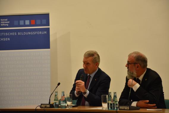 Abschließend ging Christian Wulff auf Europa und die Europäische Union ein. Ihn besorge es, dass für dieses mutige Projekt nur so wenig Menschen einstehen würden. Die Europäische Union sei die Grundlage für die deutsche Einigung gewesen. Wir müssen uns selbst fragen, was uns Europa wert sei. Die zukünftigen Herausforderungen könne man nur gemeinsam oder gar nicht lösen.