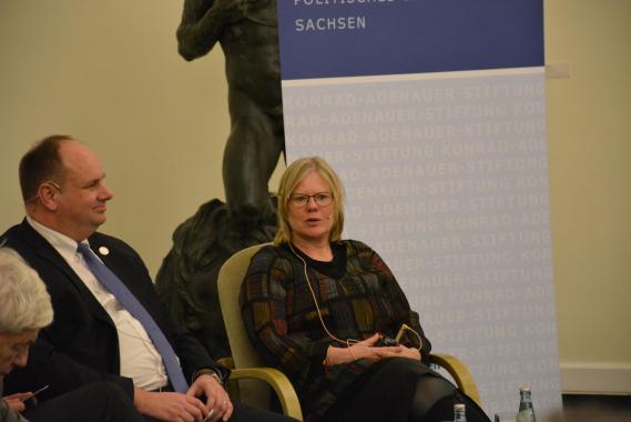Nach den einleitenden Worten des Oberbürgermeisters widmete sich Dr. Anna Kaminsky in ihrem Statement der Bedeutung von Denkmälern für die Geschichte und Gesellschaft und ergründete die wachsenden Anforderungen an diese. Sie konstatierte, dass Denkmäler eine Manifestation der Furcht vor dem Vergessen seien. Ihr Stellenwert zeige sich dort, wo es keine gibt.