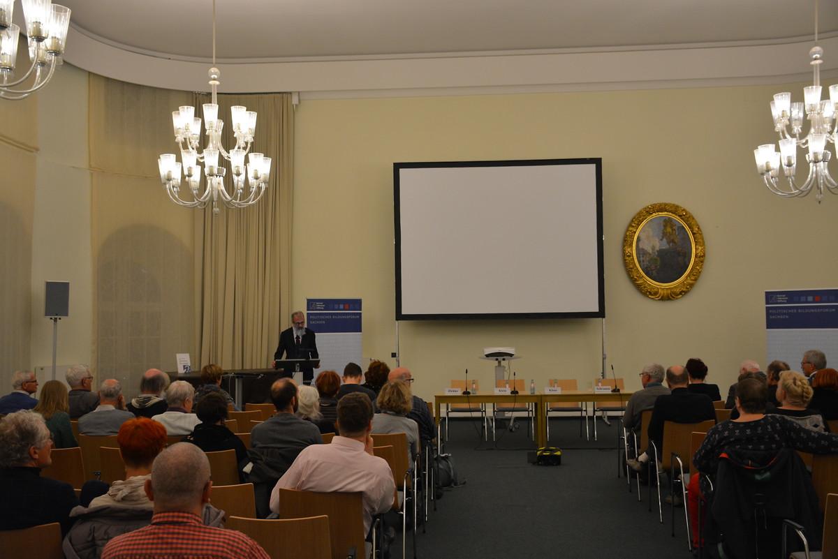 Zu Beginn der Veranstaltung gaben die drei Referenten einen kleinen Vortragsimpuls. Christian Schramm konstatierte, dass die Menschen sich momentan emotional eher verschließen würden. Demokratie brauche jedoch Offenheit. Diese gehe zwar mit Schutzverminderung einher, doch dadurch werden auch die Positionen und Impulse anderer in Augenschein genommen. Das könne konfliktmindernd wirken und einen Lernzuwachs fördern. Jedoch benötige dies Klarheit über sich selbst und einen unabhängigen Geist.