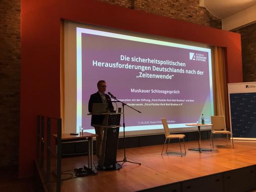 Der Tag mit Dr. Markus Kaim wurde von einer Vielzahl interessanter Fragen und anregender Gedankenaustausche geprägt, was das Verständnis für geopolitische Themen und die sicherheitspolitischen Herausforderungen unserer Zeit erweiterte. Wir möchten allen Teilnehmerinnen und Teilnehmern herzlich für ihre bereichernden Wortbeiträge und fundierten Publikumsfragen danken, die zu einer tiefergehenden Erörterung der Thematik beigetragen haben. Ein besonderer Dank gilt auch der Stiftung "Fürst-Pückler-Park Bad Muskau" sowie dem Förderverein "Fürst-Pückler-Park Bad Muskau e.V." für die hervorragende Kooperation und die Möglichkeit, diese bedeutsamen Schlossgespräche durchzuführen.