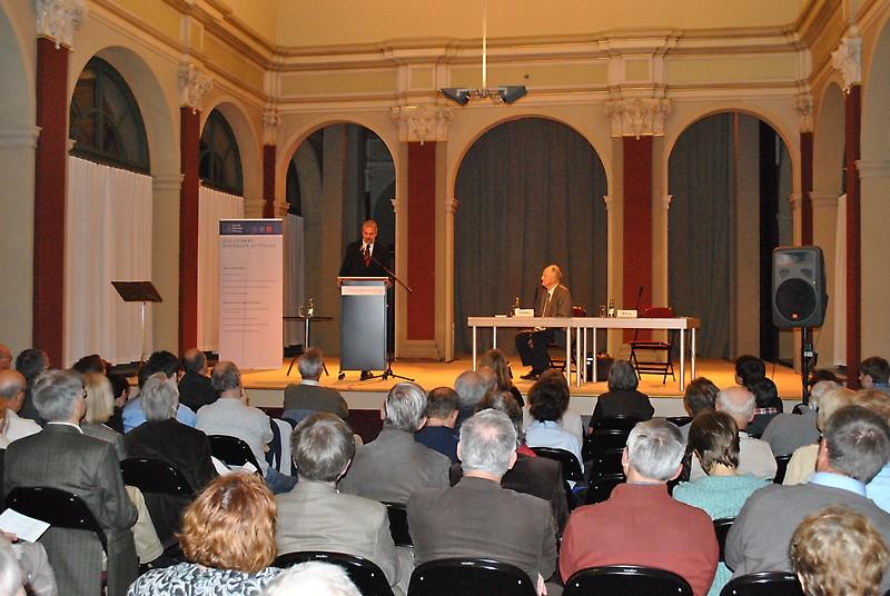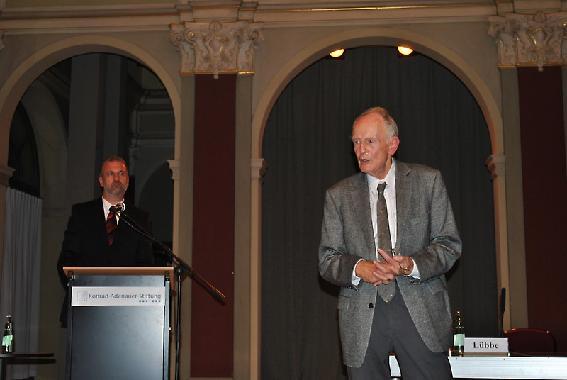 Anschließend stellte Herr Dr. Klose den Referenten Prof. Dr. Hermann Lübbe, einen bekannten deutschen Philosophen vor, der stets darum bemüht sei einen praktischen und aktuellen Bezug zu seiner Theorie herzustellen.