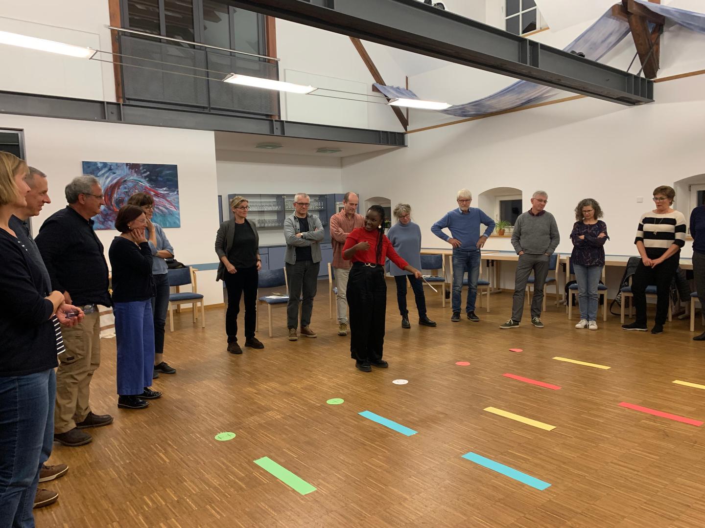 Am Freitag, dem 27.10.2023, fanden sich alle Teilnehmenden des Vortragswochenendes zusammen.  Mithilfe einer interaktiven Einführungsrunde hatten die Teilnehmerinnen und Teilnehmer die Möglichkeit erste Gedanken und Ansichten zu den Themen Gewalt, Gerechtigkeit und Religion auszutauschen.