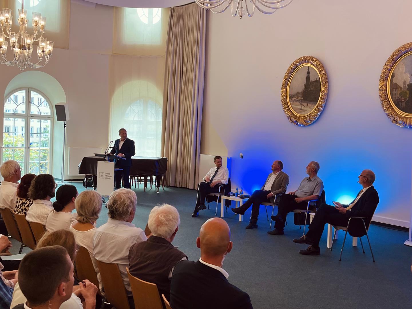 Das Recht auf freie Meinungsäußerung sowie die Freiheit von Forschung und künstlerischem Schaffen sind in Deutschland durch das Grundgesetz gesichert, trotzdem jedoch ein in der Gesellschaft kontrovers diskutiertes Thema. Werden Meinungs-, Wissenschafts- und Kunstfreiheit und damit unsere Demokratie zunehmend durch eine neue Form der Zensur bedroht? Welche Rolle nimmt der Öffentlich-rechtliche Rundfunk in der Meinungsbildung ein? Und wie sollte mit Meinungen umgegangen werden, die in der politischen Mitte unterrepräsentiert sind? Über diese und viele weitere, spannende Fragen diskutierten unsere Referenten Michael Kretschmer (Ministerpräsident des Freistaates Sachsen), Markus Meckel (Minister a. D.) und Michael Beleites (ehem. Bürgerrechtler) am 17. August 2023 im Stadtmuseum Dresden unter der Moderation von Dr. Joachim Klose in einem Gespräch, in dem auch die Teilnehmenden dazu eingeladen worden, sich am Diskurs zu beteiligen.