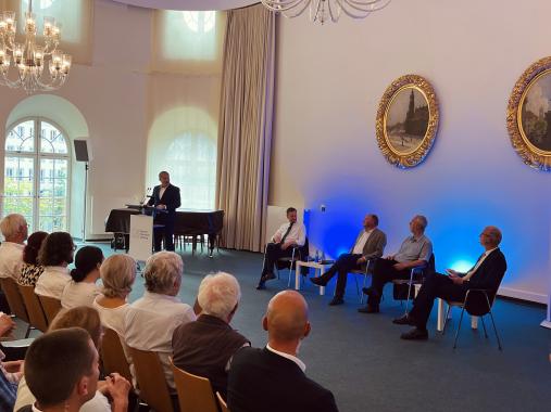 Daraufhin eröffnete Dr. Klose den Dialog mit dem Publikum, das nun Fragen an die Referenten richten durfte. Die Zuhörerschaft nahm diese Möglichkeit offen an und es wurde sich so insbesondere über Meinungsfreiheit während der Covid-19 Pandemie, zum Umgang mit der AfD, zur Auseinandersetzung mit unterschiedlichen Meinungen zum Angriffskrieg Russlands in der Ukraine sowie zur Meinungspluralität in der Klimadebatte erkundigt. Herr Meckel plädierte hierbei noch einmal dafür, Meinungen und Themen im Pluralismus zu diskutieren, solange diese auf den Werten des Grundgesetzes basieren. Ministerpräsident Kretschmer bedankte sich abschließend für die spannende Diskussion und appellierte an alle Teilnehmenden, Initiative für den offenen Meinungsaustausch zu ergreifen. Auch Dr. Klose rief in seinem Schlusswort dazu auf, miteinander in die Diskussion zu treten und so die Demokratie zu stärken.