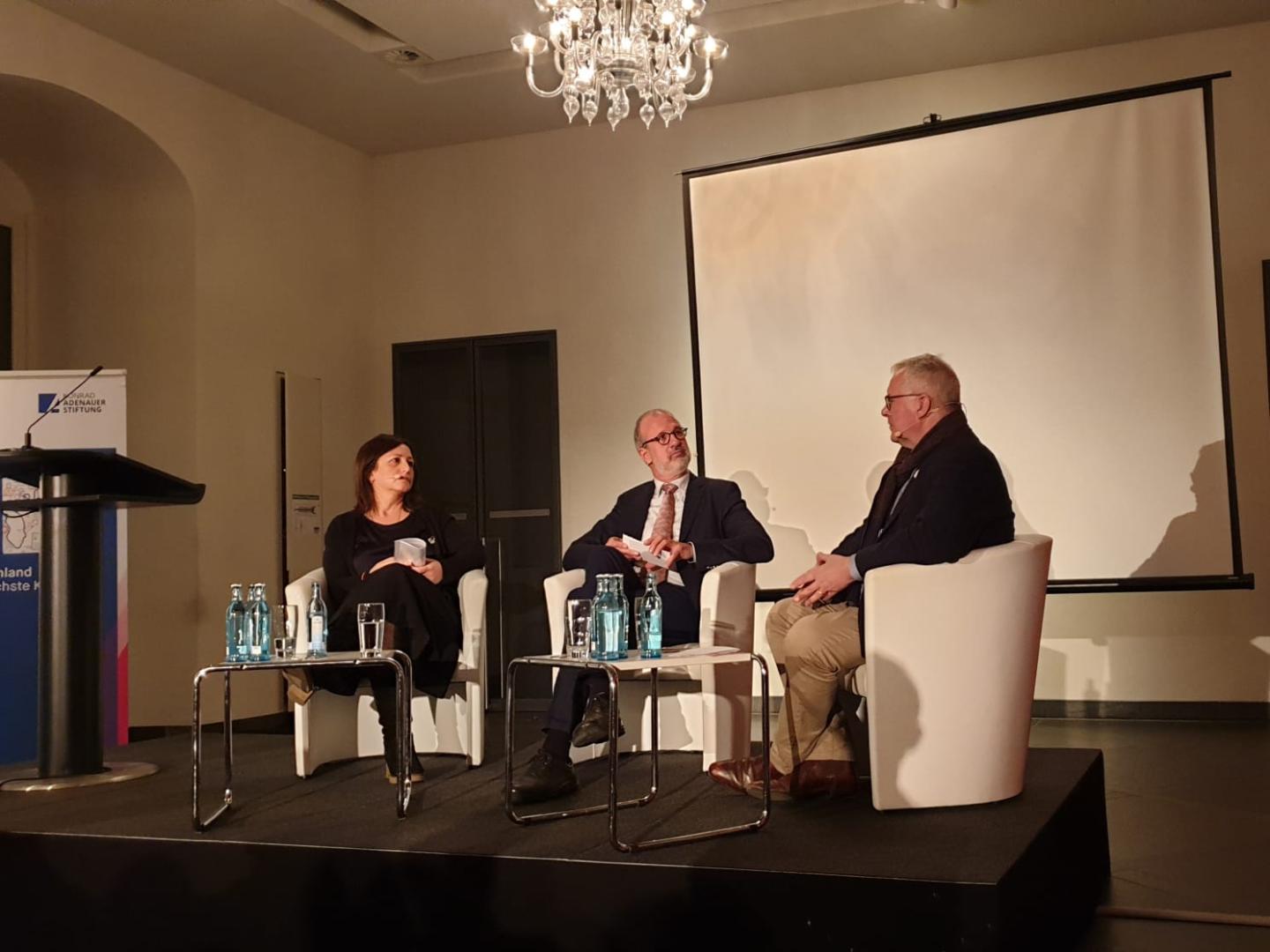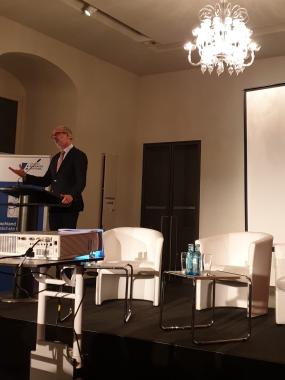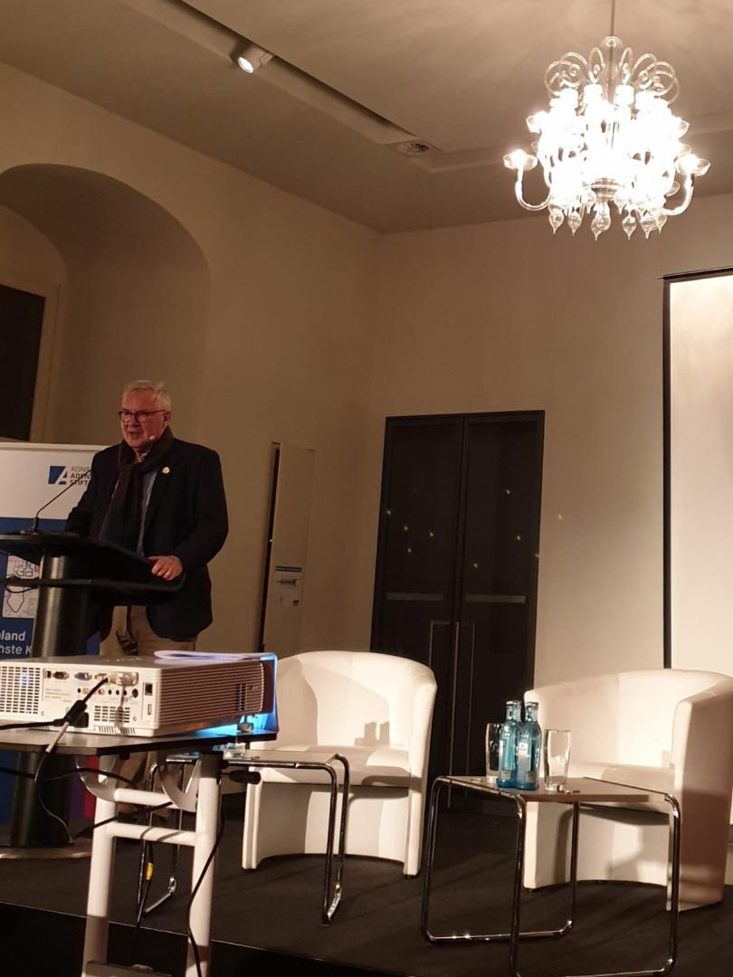 Im Anschluss an die Besichtigung der Räume begrüßte Dr. Joachim Klose die 160 Gäste im Fürstensaal. Prof. h.c. Dr. Dirk Syndram und Prof. Dr. Antonella Giannone waren zu Gast, um der Frage nachzugehen, was diese Symbole der Macht früher bedeuteten, und welche Inszenierungsmuster es heute gibt.