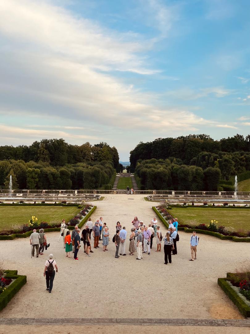 In ihrem Schlusswort wies Frau Borrmann noch einmal auf die Bedeutung von Gartendenkmälern für die kulturelle Bildung sowie auf die Interessenkonflikte um die Ressource Wasser in einer demokratischen Gesellschaft hin. Sie appellierte dabei an alle Teilnehmenden, den Umgang mit Wasser offen zu verhandeln und zu diskutieren. Komplettiert wurde die Veranstaltung durch die abschließende Führung durch den Barockgarten Großsedlitz, die von den Teilnehmenden mit großem Interesse verfolgt wurde.