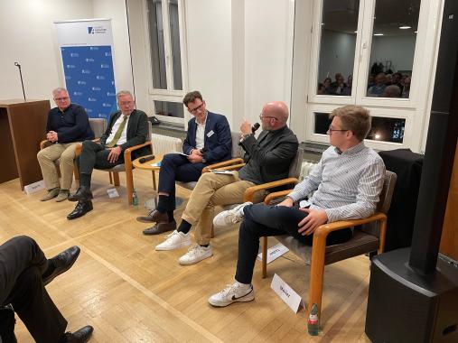Foto der Veranstaltung mit Blick auf das Podium und das Publikum KAS / Leon Fülber