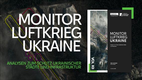 Der monatlich erscheinende Newsletter „Monitor Luftkrieg Ukraine“ bietet fundierte Analysen zu aktuellen Angriffswellen und langfristigen Entwicklungen im russischen Luftkrieg gegen die Ukraine. Er basiert auf einer umfassenden Datenbank, die seit Herbst 2022 jeden dokumentierten Luftangriff auf zivile Ziele erfasst. Ziel ist es, datenbasierte Empfehlungen zur kurz- und mittelfristigen Unterstützung der Ukraine zu formulieren. Die Inhalte richten sich an politische Entscheidungsträger, Experten im sicherheits- und militärpolitischen Bereich sowie an Fachjournalisten. Herausgegeben wird der Monitor von den „Kyjiwer Gesprächen“ in Zusammenarbeit mit dem OSINT- und Datenanalysten Marcus Welsch und der Konrad-Adenauer-Stiftung.