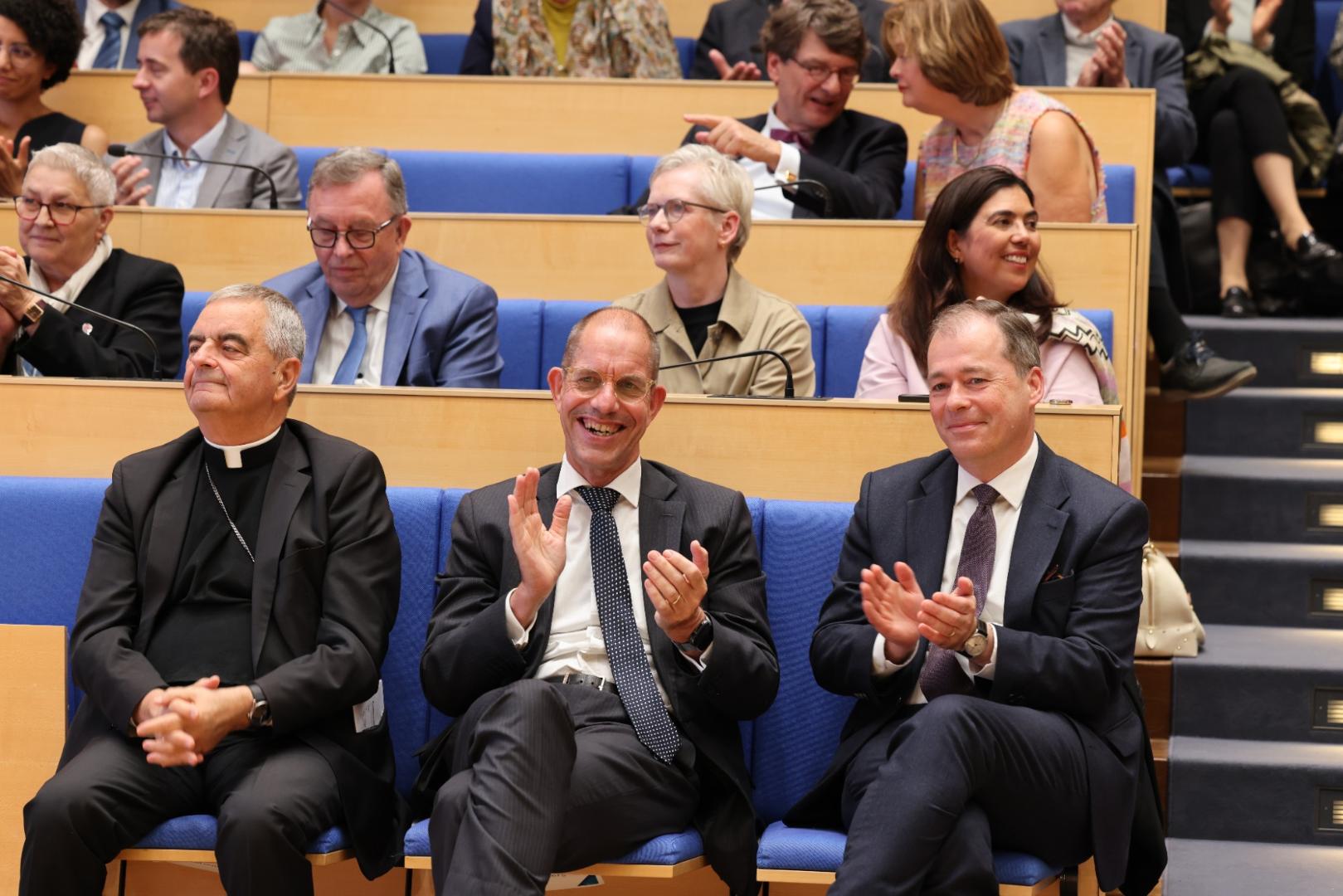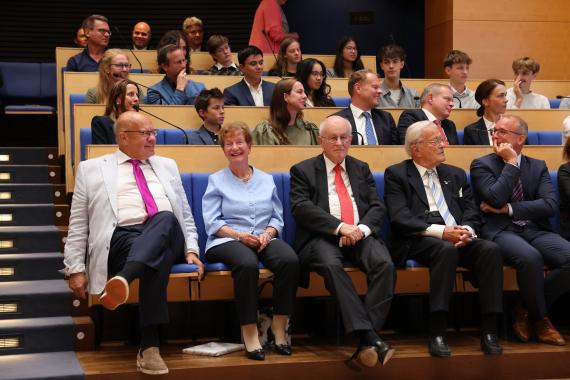 Bevor die Debatte begann, folgte ein weiterer Höhepunkt des Abends: In kurzen Videobotschaften würdigten internationale Weggefährten das Wirken von Hans-Gert Pöttering. Unter den Gratulanten waren EU-Kommissionspräsidentin Ursula von der Leyen und Seine Heiligkeit der Dalai Lama, die beide seine jahrzehntelange Arbeit für Europa und den interkulturellen Dialog hervorhoben.