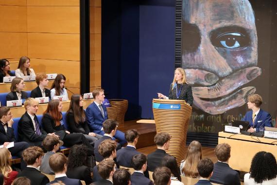 Die Schülerinnen Mila Ward, die den Posten der UN-Generalsekretärin übernahm, und Luise Massen, stv. Generalsekretärin, betonten in ihren Reden die Notwendigkeit, Ungleichheit auf allen Ebenen zu bekämpfen, und unterstrichen dabei den Unterschied zwischen wirtschaftlicher, sozialer und natürlicher Ungleichheit. Die Eröffnungsreden ausgewählter Delegationen rundeten den ersten Tag der Konferenz ab.