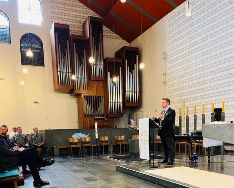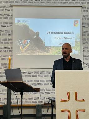 Pastor Dr. Georg Schwikart und Militärdekan Martin Söffing eröffneten den Tag mit einer Predigt. Das freundliche Desinteresse der Gesellschaft zu durchbrechen und stattdessen hinzuhören, da zu sein, von Mensch zu Mensch, sei für den gesellschaftlichen Umgang mit Veteranen und Veteraninnen besonders wichtig. „Was wäre, wenn wir uns wirklich damit beschäftigen, was Bundeswehrsoldaten bewegt? Wo fragen wir, was Soldatenfamilien wirklich brauchen?“, fragte Söffing, um dann mit Blick auf die gegenwärtige Weltlage festzustellen: „Frauen und Männer in der Bundeswehr sind die glaubwürdigsten Pazifisten, weil Sie das scharfe Ende des Soldatenberufes kennen.“