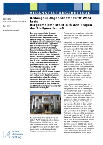 Der vor einem Jahr ins Amt gewählte Bürgermeister der südöstlichen Regionalhauptstadt Senegals, Kedougou, stellte sich im Rahmen eines Bürgerforums seinen Wählern und Opponenten. Vertreter der Zivilgesellschaft, der Berufsgilden, Ratsmitglieder stellten dem Abgeordneten und Bürgermeister Cissé teils sehr unbequeme Fragen. Cissé versteckte sich nicht hinter wagen Versprechungen und wartete mit bisherigen Realisierungen auf, gab aber das Scheitern gewisser Projekte zu und forderte die Bürger auf, sich mehr und intensiver in die Funktion und Entscheidungsprozesse der Stadt einzubringen.