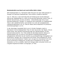 Vom 27. bis 30 März 2011 folgten25 der derzeitigen und ehemaligenStipendiaten der Konrad-Adenauer-Stiftung Dakar der Einladungzum diesjährigen Stipendiatenseminarin Saint Louis mitdem Thema "Politische Parteienund Ideologien, Wahlen und Gute Regierungsführung"