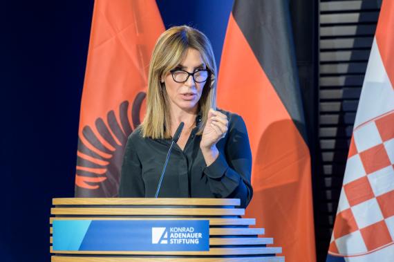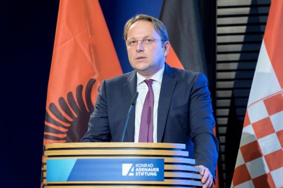 Ebenfalls extra für die Konferenz nach Berlin gereist war der EU-Kommissar für Erweiterung und Europäische Nachbarschaftspolitik, Olivér Várhelyi, der eine Grundsatzrede zur Zukunft der Erweiterungspolitik hielt, die hier abgerufen werden kann. Er stellte in Aussicht, dass die Beitrittskonferenzen mit Albanien und Nordmazedonien noch im Dezember unter der deutschen EU-Ratspräsidentschaft abgehalten werden sollten. Die EU-Mitgliedsstaaten hatten im März dieses Jahres die Aufnahme von Beitrittsgesprächen mit diesen beiden Westbalkanstaaten beschlossen. Majlinda Bregu, Generalsekretärin des Regional Cooperation Council, ging in der Diskussion insbesondere auf die nun notwendigen Schritte zur Schaffung eines regionalen Wirtschaftsraums im Westbalkan und die Stärkung der regionalen Zusammenarbeit ein.