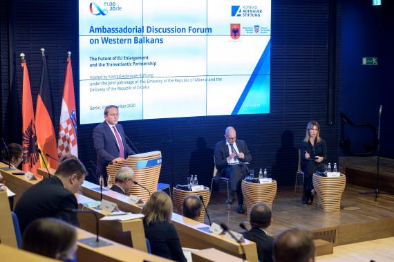 Die hochrangig besetzte Veranstaltung stand dabei unter dem Eindruck der in der Vorwoche unter US-Vermittlung beschlossenen Normalisierung der wirtschaftlichen Beziehungen zwischen Serbien und dem Kosovo. Neben Vertretern des diplomatischen Corps nahmen auch zahlreiche Abgeordnete der CDU/CSU-Bundestagsfraktion und Vertreter relevanter Bundesministerin an der Diskussionsveranstaltung teil. Ko-Schirmherren waren in diesem Jahr die Botschafter Albaniens und Kroatiens.