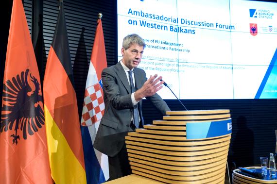 Der US-amerikanische Sondergesandte für den Westbalkan, Matthew A. Palmer, war eigens für die Konferenz nach Berlin angereist und diskutierte mit dem Transatlantik-Koordinator der Bundesregierung, Peter Beyer MdB, zur transatlantischen Partnerschaft auf dem Westbalkan. Einigkeit bestand unter den Diskussionsteilnehmern, dass ein abgestimmtes und konzertiertes Handeln von Europäern und Amerikanern auf dem Westbalkan der Schlüssel für eine positive Entwicklung der Region sei. EU und USA teilten die gleichen strategischen Ziele und Visionen für den Westbalkan. Deutlich wurde aber auch, dass sich Deutsche und Europäer eine noch engere Abstimmung mit den amerikanischen Partnern wünschen, insbesondere hinsichtlich des Normalisierungsdialogs zwischen Belgrad und Pristina.