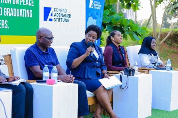 Am letzten Tag des Seminars fanden mehrere Podiumsdiskussionen statt. Zuerst wurden die Ursachen von Konflikten, die Rolle regionaler Institutionen und die Auswirkungen von Konflikten auf unterschiedliche Bevölkerungsgruppen diskutiert. In der zweiten Podiumsdiskussion des Tages betonte Robert Muhangi, Landesvertreter des EAC Youth Peace Network, die entscheidende Rolle junger Menschen bei der Förderung von Frieden und Sicherheit. Darüber hinaus sprach Falade Olutoyin, Peace Fellow des Rotary Peace Centre, über die geschlechtsspezifischen Aspekte in den Bereichen Frieden und Sicherheit. Coviiren Akamutuha, Jugendsprecherin von EAC, erläuterte genderorientierte Initiativen und deren Herausforderungen und Chancen im Kontext von Frieden und Sicherheit.