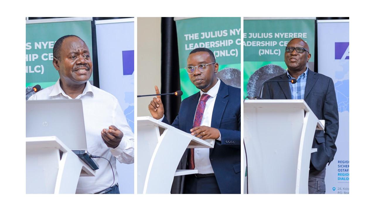 Die Begrüßungsrede hielt Susan Natumanya, Projektmanagerin am KAS RP SIPODI Ostafrika, die die Bedeutung dieser Abschlussveranstaltung für die Konsolidierung der Führungs- und Governance-Ausbildung junger regionaler Führungskräfte hervorhob. Sie betonte, wie wichtig es sei, Gemeinschaften zu fördern, die demokratische Ideale leben und sich konstruktiv mit Fragen des Friedens und der Sicherheit auseinandersetzen, und hob die Jugend als entscheidende Triebkraft für Stabilität und Entwicklung in der Region der Großen Seen hervor, wobei sie zu offenem Dialog und Zusammenarbeit aufrief. Abschließend bedankte sie sich bei dem Veranstaltungspartner, dem Julius Nyerere Leadership Centre, und ermutigte die Teilnehmer, mit Neugierde an Diskussionen heranzugehen, um auf wirkungsvolle Art und Weise einen Fortschritt hinsichtlich regionaler Friedens- und Sicherheitsinitiativen zu erzielen.