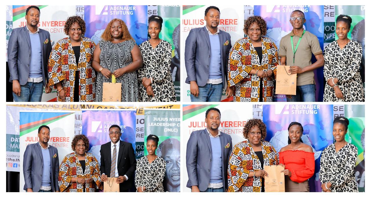 Dr. Muwanga Nansozi, Geschäftsführerin des Julius Nyerere Leadership Centre (JNLC), eröffnete offiziell die Veranstaltung. Sie lobte die Absolventen für ihr stetiges Engagement im Anschluss an frühere Jahrgänge und wies darauf hin, dass viele von ihnen inzwischen Organisationen gegründet oder sich solchen angeschlossen haben, die von ihrer Ausbildung direkt inspiriert wurden. Dr. Nansozi bedankte sich für die dreijährige Partnerschaft mit KAS RP SIPODI Ostafrika und hob hervor, dass sich kürzlich fünfzehn Absolventen um öffentliche Ämter beworben haben. Dies zeige den zunehmenden Mehrwert des Programms für den erfolgreichen Berufseinstieg aufstrebender Führungskräfte. Dr. Nansozi betonte, dass die Abschlussveranstaltung darauf abziele, durch kontinuierliches Engagement Nachhaltigkeit zu fördern, die Errungenschaften der Ausbildung zu festigen und den Fokus von der Theorie auf die Praxis zu verlagern, indem praktische Strategien zur Förderung von Friedens- und Sicherheitsprojekten ermittelt werden.