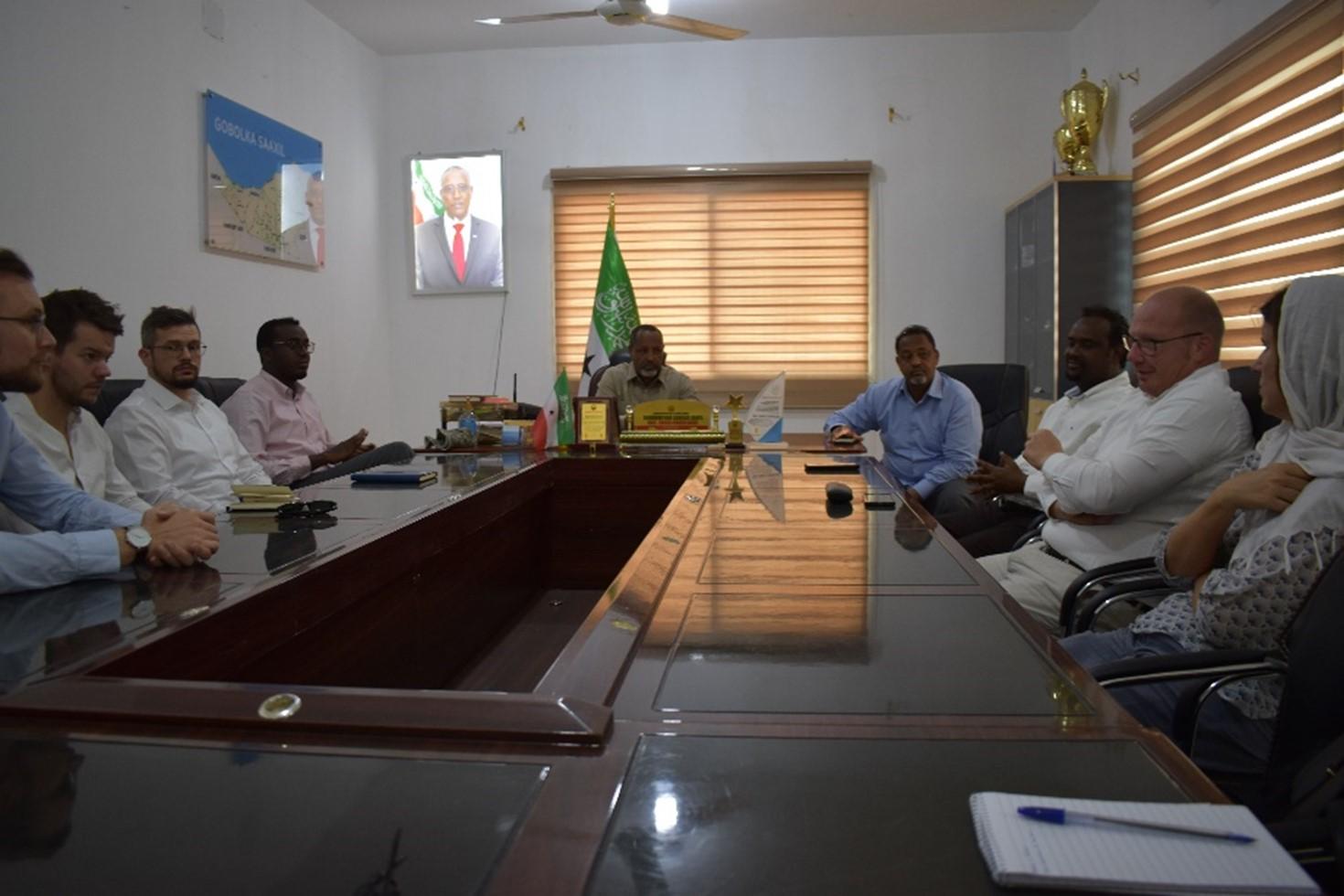 Unter der Führung von Mohamed Duale, dem Generaldirektor des Ministeriums für Umwelt und Klimawandel in Hargeisa, besuchte die Delegation das Frachtterminal im Hafen von Berbera, den Flughafen von Berbera und die Wirtschaftszone von Berbera. Die Delegation hatte auch einsichtsreiche Treffen mit dem Provinzgouverneur der Sahil-Region, Ali Abdi Abdilaahi, und dem Bürgermeister von Berbera, Abdishakur Iddin, die Einblicke in die Geschichte der Stadt Berbera, die Herausforderungen, vor denen diese steht und das Potenzial, das sie birgt, gaben. Im Hafen traf die KAS-Delegation den Generaldirektor der somaliländischen Hafenbehörde, Said Hassan Adbullahi, der einen kurzen Überblick über die jüngsten Entwicklungen im Hafen gab, wie den Bau der Terminals, die Lagerkapazität und Prognosen für die Zukunft.