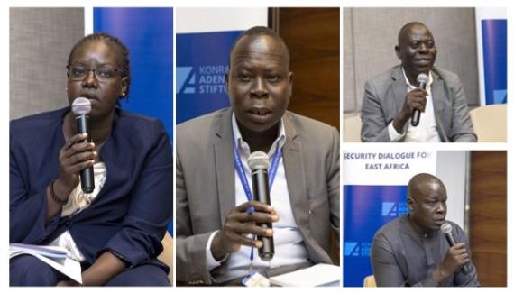 Die zweite Diskussionsrunde beschäftigte sich mit den sich wandelnden Flüchtlingsströmen und -strukturen am Horn von Afrika. Dabei thematisierten die Podiumsteilnehmer auch die Rolle des Südsudan als Herkunfts- und Aufnahmeland von Flüchtlingen. Ter Manyang, geschäftsführender Direktor des Centre for Peace and Advocacy, sowie Christopher Oringa, Spezialist für Migrationsfragen, bildeten die Diskussionrunde, das von Jackeline Nasiwa, Gründerin und geschäftsführende Direktorin des Centre for Inclusive Peace and Justice (CIPJ), moderiert wurde. Sie diskutierten die Herausforderungen, mit denen der Südsudan und die IGAD-Region (Intergovernmental Authority on Development) bei der Aufnahme von Flüchtlingen konfrontiert sind, sowie die Schwierigkeiten, mit denen die Flüchtlinge selbst zu kämpfen haben. Zudem erläuterten sie, wie die Integration von Flüchtlingen dem Südsudan nutzen könnte, und nannten Möglichkeiten, wie die lokale Regierung die Flüchtlinge unterstützen könnte.