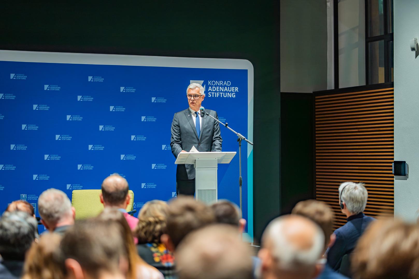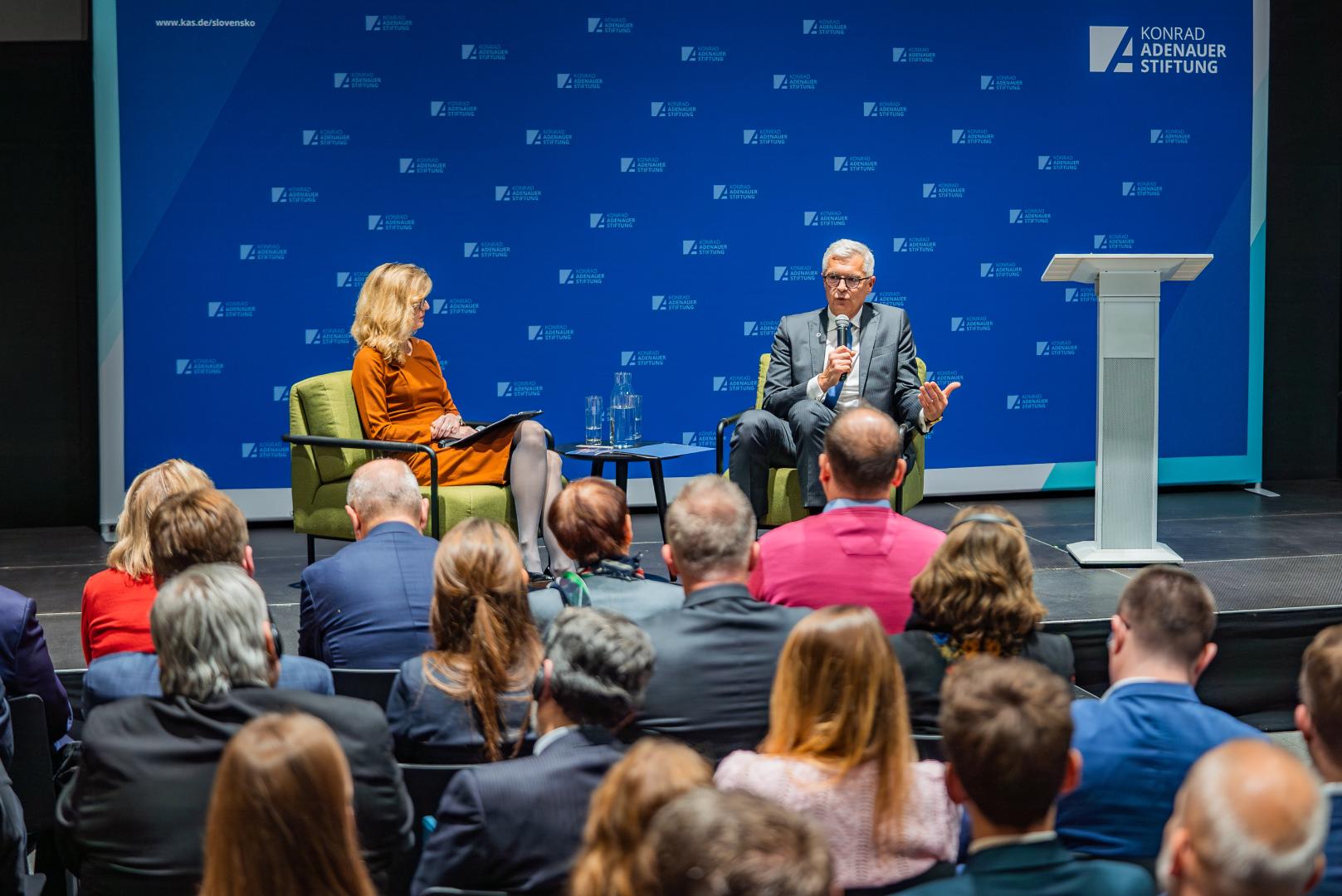In seiner Rede ging Ivan Korčok auf die 30-jährige Geschichte der Außenpolitik und des Auswärtigen Dienstes der Slowakei ein, die eine Schlüsselrolle bei der Schaffung und Erfüllung des demokratischen Status quo gespielt haben. Der Gast des Adenauer-Forums brachte seine Überzeugung zum Ausdruck, dass die Slowakei als Staat, als Republik und als Nation ein fester politischer und institutioneller Bestandteil der freien Welt ist. In seiner Rede ging er auf die folgenden Themen ein: