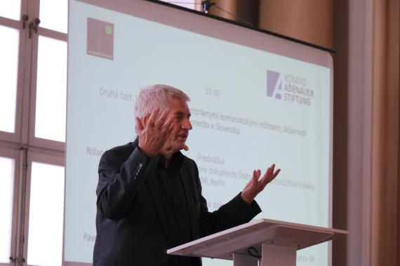 Der zweite Teil wurde von dem Bundesbeauftragten für die Unterlagen des Staatssicherheitsdienstes der ehemaligen DDR, Roland Jahn eröffnet. Sein Beitrag widmete sich vor allem der Auseinandersetzung mit dem kommunistischen SED-Regime nach dem Mauerfall und der friedlichen Revolution. So seien die Bürger der ehemaligen DDR nach dem Fall des Kommunismus bestrebt gewesen, die Akten und die Archive der damaligen Staatssicherheit um jeden Preis zu bewahren und sie vor Vernichtung zu schützen, da sie ein Teil der schrecklichen Geschichte dokumentierten. Es geschah somit anders als in der damaligen Tschechoslowakei, wo es erst nach mehreren Jahren zu einer bewussten Auseinandersetzung mit den Verbrechen des Regimes kam. Die sanfte Revolution war offensichtlich zu mild im Umgang mit den kommunistischen Verbrechern, meinte Ivan Šimko in der anschließenden Diskussionsrunde. Doch gerade Konferenzen wie diese sollten dazu beitragen, dass die Verbrechen und die Rechtswidrigkeit vieler Taten enthüllt werden und der Opfer mit Dankbarkeit und Respekt gedacht werde, sagte der Organisator der Konferenz, František Neupauer, Gründer des Bürgervereins "Unauffällige Helden" im Rahmen seiner Rede.