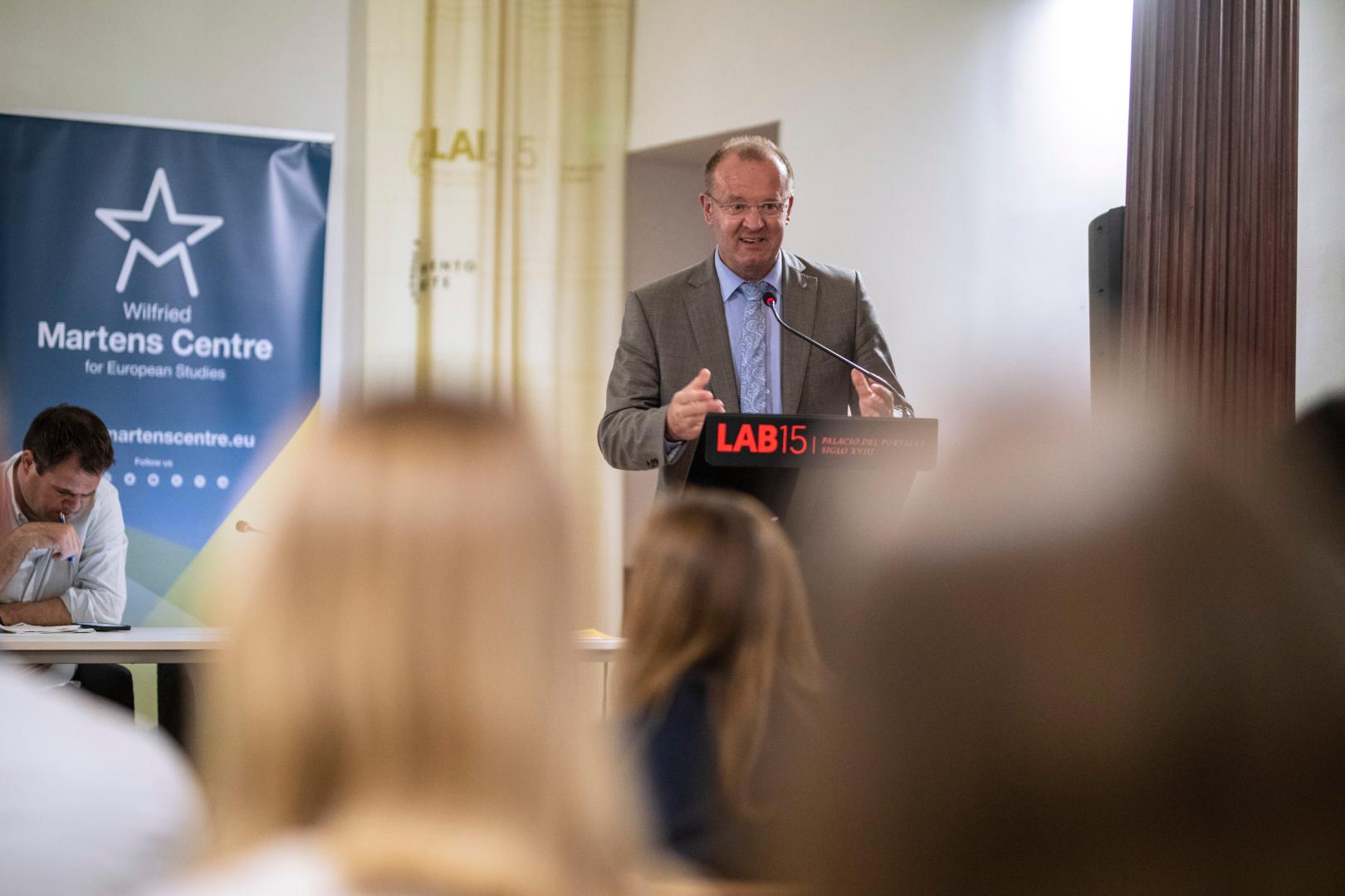 Im Rahmen des Panels „Europas politische Systeme verstehen“ unterstrich Dr. Peter Hefele (Wilfried Martens Centre) die Notwendigkeit, in den EVP-Mitgliedsparteien den Dreiklang aus Führungsstärke, Kommunikation und Repräsentation zu verbessern. Die Anforderungen an junge Nachwuchsführungskräfte hätten sich gewandelt, weshalb sich auch die Rekrutierung des Nachwuchses ändern müsse. Auch wäre es hilfreich, die Anbindung an die Zivilgesellschaft wieder zu intensivieren. Im Bereich der Kommunikation habe die EVP Schwierigkeiten, ihre Inhalte und Werte an die Bürger zu vermitteln. Dabei helfen Symbole, Menschen zu motivieren und zu engagieren und gemeinsam geteilte Werte zu vertreten. Letztendlich wachse der Populismus am rechten und linken Rand, weil die moderaten Parteien nicht in der Lage seien, die Anliegen der Bürger adäquat zu repräsentieren.