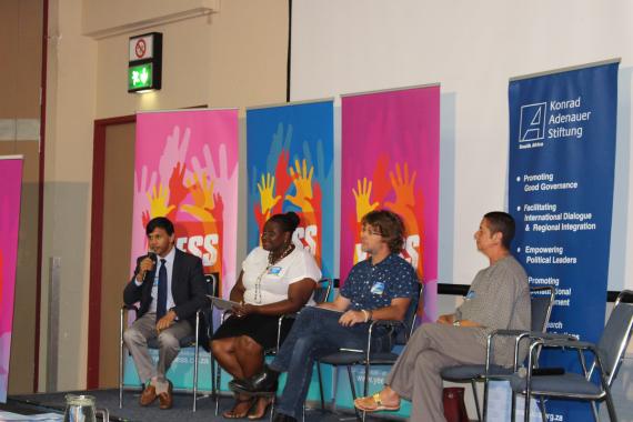 Das erste Panel gab den Jugendlichen die Möglichkeit konkrete Probleme zu benennen. Dabei wurde insbesondere kritisiert, dass Unternehmen häufig Jugendliche primär als Risiko einstufen und sie dementsprechend nicht einstellen. Dies wurde auch von Vertretern der Organisationen Harambee, Black Hat Leadership Academy oder Helendale Youth als großes Hindernis identifiziert. Indem Jugendlichen unterstellt werde, unvernünftig, häufig drogenabhängig oder in Gewalt verwickelt zu sein, werde ihnen die Schuld an ihrer Arbeitslosigkeit zugewiesen. Das führe zu einer großen Frustration bei den Jugendlichen, die sich beispielsweise auch in den #feesmustfall-Protesten widerspiegeln würde. Angesichts des wachsenden Anteils der Jugend in der Bevölkerung stellt diese eine tickende Zeitbombe dar. Die Vertreter der unterschiedlichen Organisationen machten ebenfalls auf ihre Angebote aufmerksam, wie zum Beispiel Harambee, die Berufseinsteiger an passende Arbeitsgeber vermitteln oder die Black Hat Leadership Academy, die durch ein breites Portfolio an Weiterbildungsangeboten das Profil von Arbeitnehmern versucht zu stärken.