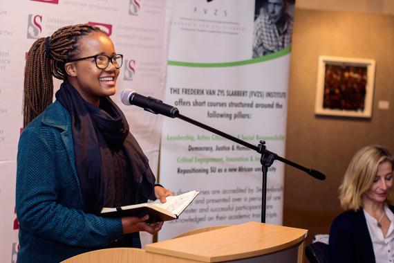 The discourse event was opened by Zama Nkabinde, Programme Coordinator of the African Leadership Development Programme at the FVZS, who addressed some welcoming remarks to the audience and introduced the theme of the evening. Christina Teichmann, Project Manager of the KAS Office Cape Town welcomed the audience on behalf of the Foundation and presented the mandate of KAS in South Africa to promote Democracy, Good Governance and the Rule of Law. Moreover, Ms Teichmann remarked the Foundation’s appreciation for the students’ initiative, highlighting that a transformative journey like the one to Qunu not only constitutes a travel to the roots of Nelson Mandela, but can also be a travel to the roots of the individual students themselves, thereby uniting young people of very diverse backgrounds.