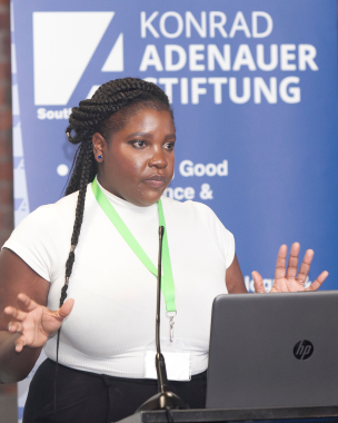 Rebecca Sibanda, Projektbeauftragte beim CFCR, präsentierte die Ergebnisse zu Meinungsfreiheit, dem Recht auf Staatsbürgerschaft und den Zugang zur Judikative. Alle drei Rechte wurden mit einem "B" bewertet, welches als ein recht gutes Ergebnis interpretiert werden kann. Die Entwicklung der Meinungsfreiheit und des Zugangs zur Judikative ist im Vergleich zum Vorjahr jedoch negativ. Sibanda erläuterte außerdem die Herausforderungen für Asylbewerber und Menschen ohne südafrikanische Staatsbürgerschaft, die aufgrund der südafrikanischen Gesetzgebung oft staatenlos werden würden.