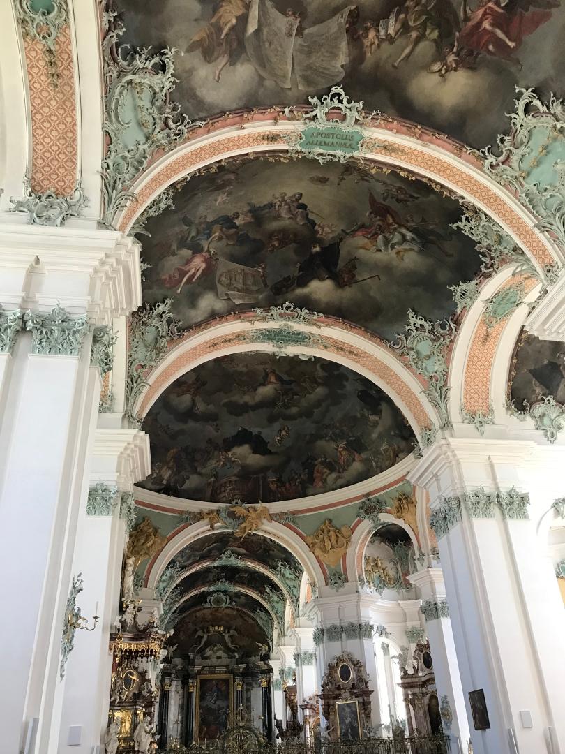 "Etwas dunkel, nicht?" Stadtführerin Erika Akermann deutete an die Deckengemälde der Sankt Galler Kathedrale, die dort im späten 18. Jahrhundert angebracht wurden. Als Vorbild dienten die Fresken der Sixtinischen Kapelle, die allerdings zu diesem Zeitpunkt durch die Jahrhunderte an Kerzenlicht rußgeschwärzt gewesen seien. Die beeindruckende Stiftsbibliothek wartete mit dicken Handschriften und ihrer Architektur, dem Süddeutschen Bodenseebarock, auf. Die Stadtführung offenbarte Spuren des vergangenen Glanzes als Handels- und Kulturzentrum der Ostschweiz, wie die vielen verschnörkelten und aufwendig gestalteten Holzerker in Steinoptik zeigten. Der Blick auf den Bodensee vom klimatisierten Reisebus auf dem Weg zurück in die Tagungsstätte war ein schöner Abschluss einer anstrengenden, aber unvergesslichen und schönen Exkursion.