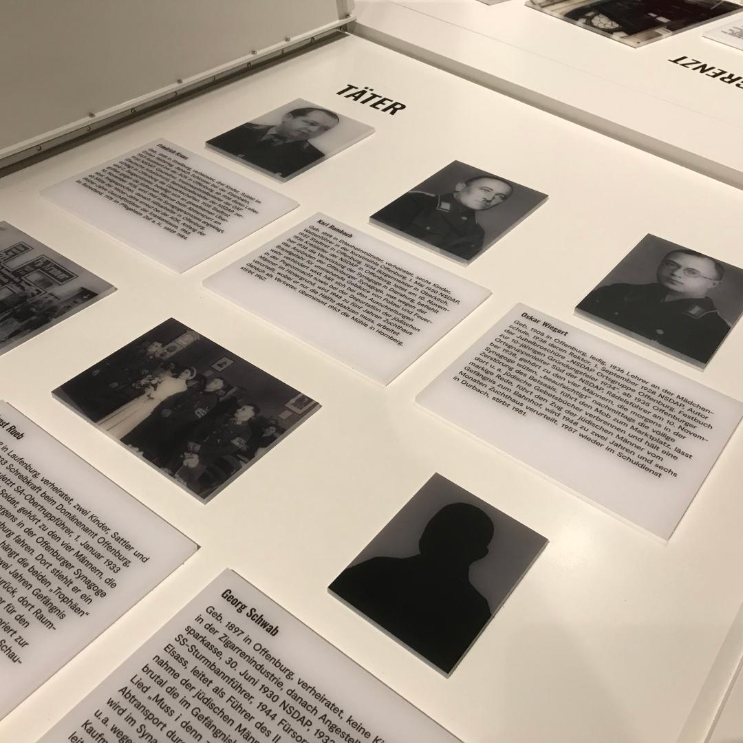 In der anschließenden Ausstellung fanden sich einige originale Exponate aus dem Film, die Hermann-Malecha erläuterte. Ein Schüler vergewisserte sich, ob er richtig gelesen habe, dass man „was mit den Haaren“ der jüdischen Menschen gemacht habe. Hatte man, und zwar im Sinne der „Weiterverwertung“, wie es in bestem Bürokratendeutsch hieß, wenn man den vergasten Menschen unter anderem die Haare abrasierte, um damit Matratzen zu füllen, das Zahngold aus den Kiefern herausbrach oder Ringe und Schmuck von den Körpern zog; auch die Kleidung wurde nicht verschont und auf dem Sekundärmarkt angeboten. Die Wohnungen der jüdischen Menschen wurden überdies ausgeräumt und das Mobiliar und die Einrichtung in Offenburg auf einer Art Auktion sehr günstig den nicht betroffenen Menschen zum Kauf angeboten.
