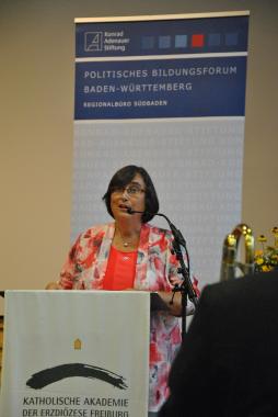 Dr. Ricarda Bons, seit 15 Jahren Vorsitzende des Freiburger Regionalverbandes von donum vitae, erinnerte an die Anfänge des Vereins katholischer Laien. Sie beschrieb die Aufgaben und Ziele des Vereins, der schwangeren Frauen in Konfliktsituationen zur Seite steht, und dankte allen, die zu dieser Erfolgsgeschichte beigetragen hatten.