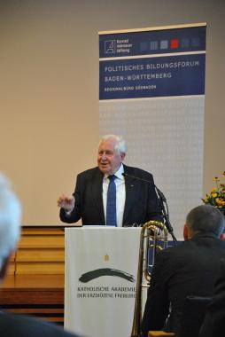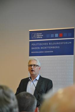 Thomas Wolf, der Leiter der Konrad-Adenauer-Stiftung Südbaden, blickte auf zehn erfolgreiche Jahre der Zusammenarbeit mit donum vitae zurück, in denen man unter anderem Persönlichkeiten wie den Verfassungsrichter Ernst-Wolfgang Böckenförde, den Moraltheologen Eberhard Schockenhoff, die Gründerin und Bundesvorsitzende von donum vitae Rita Waschbüsch, den Neurobiologen, Arzt und Psychotherapeuten Joachim Bauer oder etwa den Leiter von Caritas International, Oliver Müller, zu Gast hatte. Aufgabe der politischen Bildung sei es nicht, auf der Welle der öffentlichen Aufmerksamkeit zu surfen, sondern sich gerade jener gesellschaftlichen Fragen anzunehmen, die in der öffentlichen Wahrnehmung zu kurz kommen.