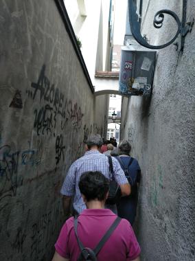 Die Teilnehmer begaben sich bei dem Stadtrundgang auf eine spannende Spurensuche. Was ist übrig geblieben vom jüdischen Leben in Freiburg? Welche persönlichen Schicksale haben jüdische Bürger erlitten? Wo hat der Antisemitismus bis zum heutigen Tage seine Spuren hinterlassen?