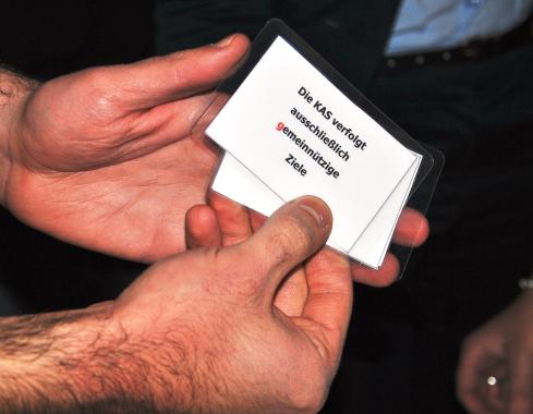 Nach dem Abendessen ging das Wort an Trainer Daniel Dutzi. Sein Vortrag hatte die kommunikativen Funktionen einer Tagungsleitung zum Inhalt. Dabei wurden Kommunikationsstrategien und Tipps für das kompetente Auftreten als Vertreter der KAS vermittelt, sowie methodische und strukturierende Elemente eines Seminars diskutiert. Gerade für die jungen Teilnehmer war von großem Interesse, wie man eine rationale und kritische Selbsteinschätzung erreicht, die das nötige Selbstvertrauen im Umgang mit zukünftigen Seminarteilnehmern und Referenten ermöglicht. Mit diesen Eindrücken konnte die Gruppe nach Abschluss der ersten Tageseinheit den Abend entspannt im „Peterstüble“ ausklingen lassen. In lockerer Atmosphäre wurden so neue Bekanntschaften geknüpft und heiße Diskussionen geführt.