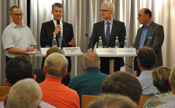 Die Zukunft gehört der Elektromobilität?! Ja, denn sie erscheint alternativlos, so der Tenor des Expertengesprächs vom Montag, 10. Juli in Lörrach. An die 40 Gäste waren auf Einladung des Regionalbüros Südbaden der Konrad-Adenauer-Stiftung ins Dreiländermuseum gekommen. Die Schirmherrschaft hatte der Bundestagsabgeordnete Armin Schuster übernommen. Zusammen mit dem CDU-Verkehrsexperten Steffen Bilger (MdB), Gerd Burkert (Dipl.-Ing.) von der Energie-Agentur des Landkreises Konstanz und Gerd Stryi-Hipp vom Fraunhofer-Institut in Freiburg wurden elektrische Antriebe unter der Moderation von KAS-Büroleiter Thomas Wolf aus Freiburg diskutiert.