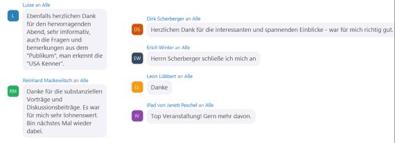 Der Politikwissenschaftler resümierte, dass die USA zur alten Stärke zurückfinden könnten, wenn sie die gesellschaftliche Spaltung ein wenig verringern würden. Derzeit ist dies allerdings eine mission impossible. Der Ansatz Bidens, große Gesetzesvorhaben durchzusetzen und den Menschen damit zu zeigen, dass Politik etwas für sie tut, war der richtige. Der ist jedoch gescheitert. Nicht zuletzt, da zwei Drittel der republikanischen Wähler Trumps großer Lüge glauben, die Demokraten hätten die Wahlen 2020 gestohlen. Dieses Leben in einem eigenen Universum schätzte Herr Thimm als ebenso besorgniserregend ein wie die Versuche von Trump und einigen Republikanern, demokratische Mechanismen außerkraftzusetzen.