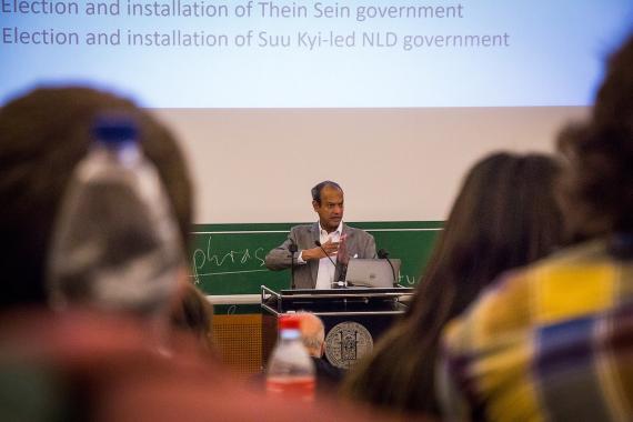 Woher kommen die aktuellen Differenzen, die in Myanmar seit geraumer Zeit auch gewaltsam ausgetragen werden? Welche Ziele verfolgen die Konfliktparteien? Einen Einblick in die Geschichte und politische Entwicklung gab Prof. Narayanan Ganesan, der am 2. November 2017 in der Universität Freiburg sprach.