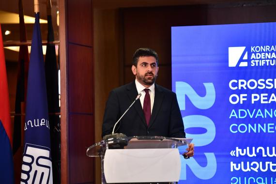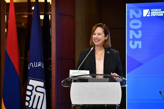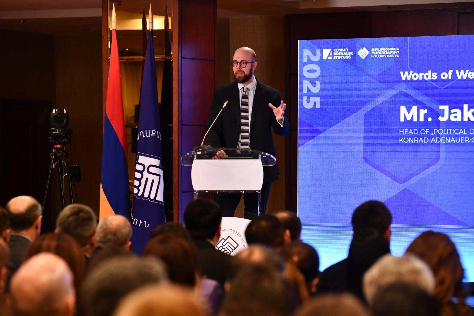 Ein besonderer Fokus lag auf den aktuellen politischen Entwicklungen nach der Unterzeichnung der historischen Friedenserklärung zwischen Armenien und Aserbaidschan. In den Beiträgen und Paneldiskussionen wurde erörtert, wie Armenien seine Rolle als regionaler Knotenpunkt für Handel, Dialog und Entwicklung neu definieren kann. Dabei wurden auch jüngste diplomatische Initiativen, darunter internationale Vermittlungsbemühungen und neue Vorschläge zur Förderung regionaler Konnektivität, als Chancen für nachhaltigen Frieden und Zusammenarbeit diskutiert.