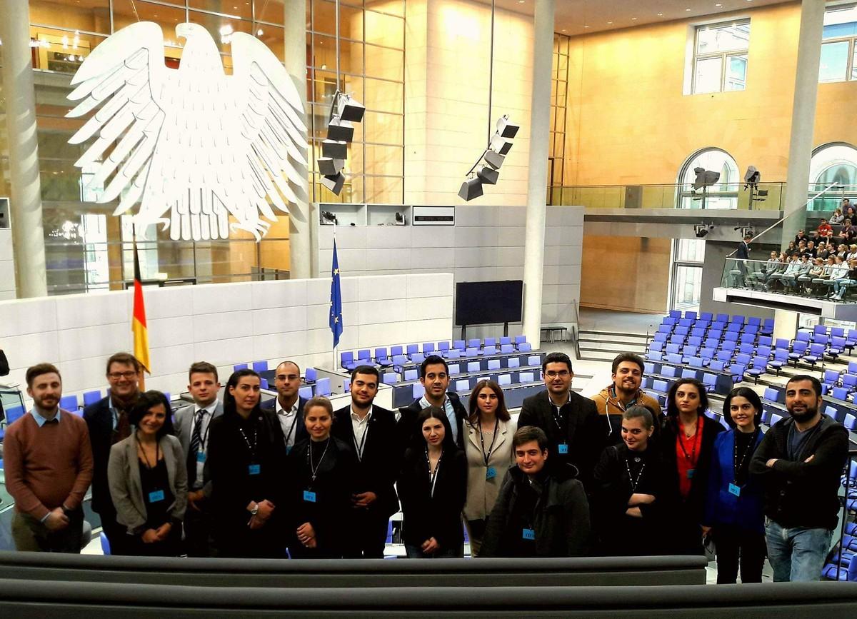 In Berlin hatten die jungen Nachwuchspolitiker Gelegenheit Gespräche mit Vertretern der Jungen Union (JU), des Bundeskanzleramtes und des Bundestages zu führen. Parteienorganisation und Nachwuchsförderung standen bei einer längeren Diskussion mit dem internationalen Referenten der JU Herrn Christian Kreiser im Vordergrund. Die unabhängige Organisation der Jungen Union war für die Mitglieder der politischen Nachwuchsorganisationen aus dem Südkaukasus von besonderer Bedeutung.