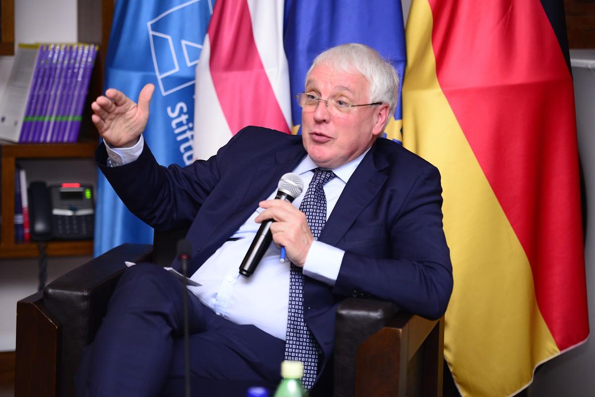 Die beiden Redner Dr. Jamie Patrick Shea, stellvertretender Beigeordneter des NATO-Generalsekretärs für künftige Herausforderungen im Sicherheitsbereich und Professor Dr. David Darchiaschwili diskutierten die Gefahren und Herausforderungen in der Schwarzmeerregion und Georgien.
