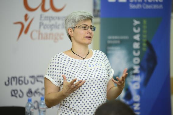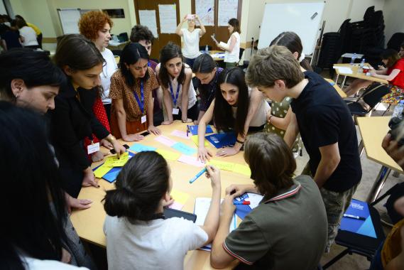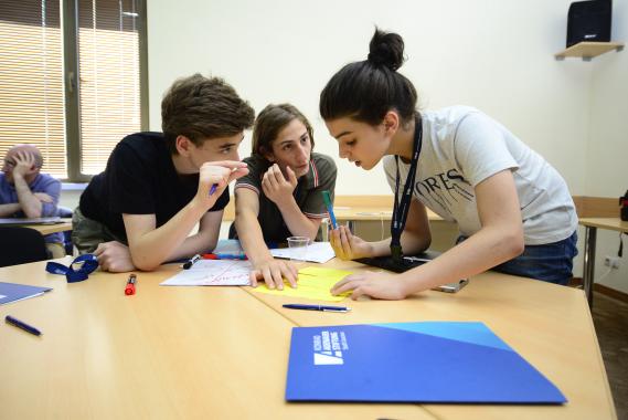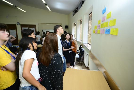 Während des Seminars am 04. Juli machten sich die Teilnehmer durch verschiedene Aktivitäten mit den „European Clubs“ vertraut. Fragen wie „Was bedeutet es für Georgien, Europäer zu sein?“, „Was verstehen wir unter europäischen Werten?“ und „Warum sollte Georgien ein Teil Europas sein?“ wurden von Schülern und Lehrern kreativ auf selbstgemachten Postern beantwortet.