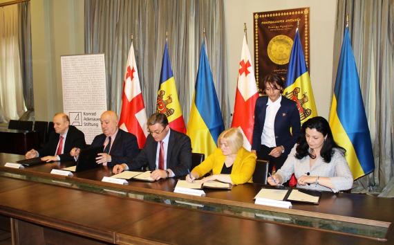 Vor diesem Hintergrund wurde bereits im September 2014 von den Ausschüssen für Europäische Integration der Länder Georgien, Moldau und Ukraine im Rahmen einer Stiftungsveranstaltung eine verstärkte Kooperation der Parlamente und zivilgesellschaftlichen Akteure der drei Länder der Östlichen Partnerschaft mit Assoziierungsabkommen als strategische Antwort auf die neuen Realitäten und Herausforderungen angeregt. Die Konrad-Adenauer-Stiftung erklärte sich bereit, diesen Prozess sowohl inhaltlich als auch organisatorisch zu begleiten und als neutraler und respektierter Akteur bei der Entwicklung eines neues Kooperationsformat mitzuwirken.